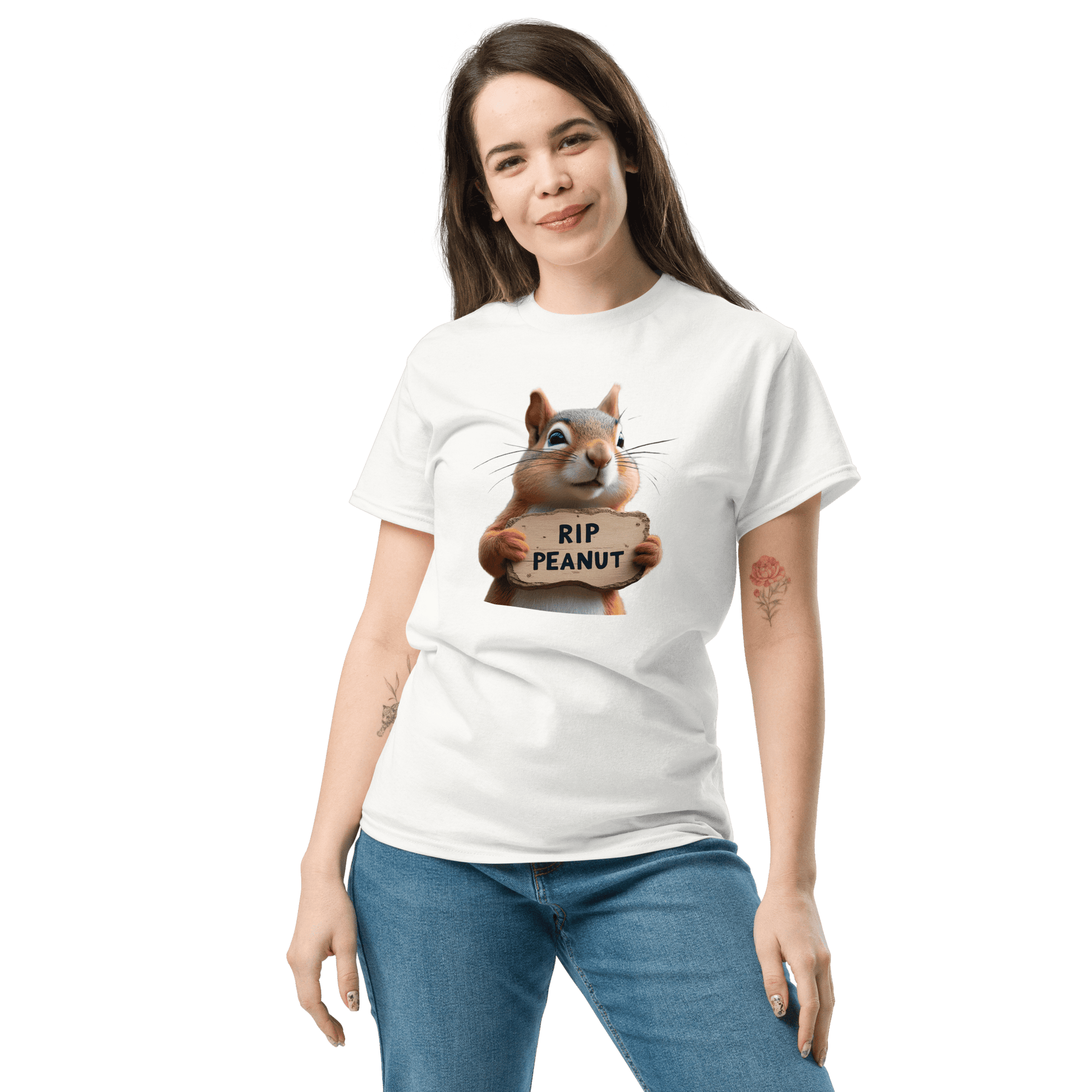 Introducing the "RIP Peanut" T-Shirt, a poignant and unique tribute to Peanut, the squirrel, whose story resonates with many in these tumultuous times. This t-shirt isn't just apparel; it's a statement, a conversation starter, and a remembrance of a character that has touched hearts across the digital world.