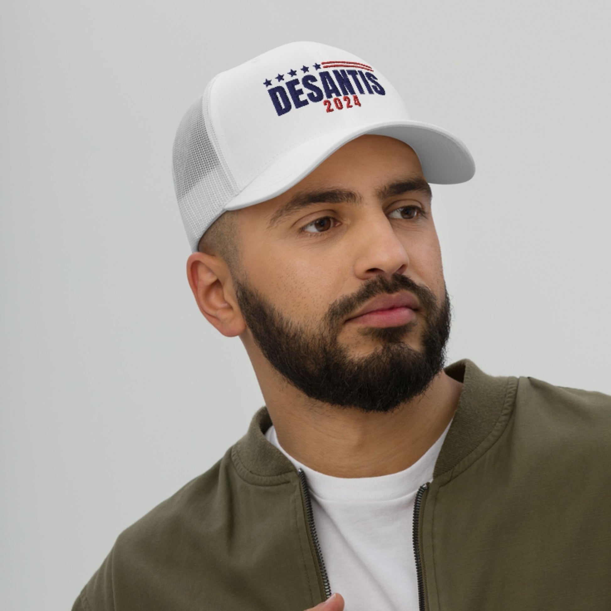 - Ron DeSantis for President 2024 MAGA Adjustable Trucker Hat! Perfect for any Governor Ron DeSantis fan, this very high-quality hat is printed and shipped from the USA, unlike cheap hats you see for sale that are imported from China. Makes a perfect gift or addition to your own collection! Original design in Red and Navy embroidered on the front.
